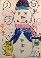 Emery, I love your snowman!! It is a “jolly happy” snowman. The heart shaped buttons and fun details are wonderful! So proud of you! Love,Boots