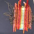 I love the use of thick and thin warm colored ribbons in contrast with the muted weaving strands!