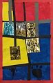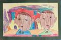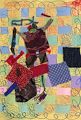Hi Lucas, This piece of artwork has a lot of different techniques included - the woven strip background, line work around the edges, and collage with fabric. I will look forward to having you tell me about the characters you created. Miriam Schapiro is an artist that I did not know. I located her work on the internet to see how it influenced the work you created. I'm looking forward to making more artwork with you this summer. Love, Grandma Becky