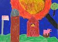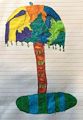 Hi Lucas, What a lovely tree. At first, I thought it was a Christmas tree filled with lights and ornaments. Then, I wondered if it's a tree loaded with pinecones? You made good use of your complementary colors which makes your tree POP against the background. Did you enjoy the grit of the sandpaper as you applied the waxy crayons? Keep creating and having fun.