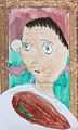 Hi Lucas, You did a wonderful job with your self-portrait. Did you choose to wear your football shirt that day on purpose? I can almost see you blinking those long eyelashes and winking at me. You are an artist! Love, Grandma Becky