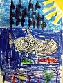 Lukas - I really like your artwork of the silly birds. The way you drew the birds looks like they are talking to each other. Their long legs make them look really funny. The colors you used as the background are nice and bright. You did a great job Lukas. We are very proud of you. Love,