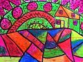 Lukas - what a beautiful job you did on your landscape. The colors are so nice and bright. I like all the different shapes you used in your design. I especially like the house you made as part of your art. Great job Lukas!! Love. Mimi