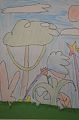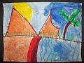 It looks like you used watercolor paints for this landscape, Anna! I love the blues and greens! Your water lines are perfect, and so is your sun! Great work!
