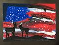 Ohhhh...I love anything with a patriotic design! The flow of the red/white/blue design as the midnight sky is a perfect backdrop for the moose (or deer) as they gaze from top of the mountain. Good job, Fiona!