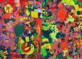 Dear Rhys, Wow what a lot of BRIGHT colors!!! Of course, I especially like the orange! Bet it was fun painting this. Did you use a big brush or your hands? Lots of Love, Grandma Becky