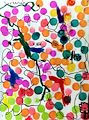 So pretty! This has really nice choice of color, excellent balance! The way you grouped different colors together while having some overlap adds interest as well! Your use of movement with the black line around the colorful dots is also intriguing. Nice job, Savannah! Can't wait to see more!!
