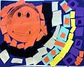 This is such a wonderful work of art! I love the color choices and how the rings of color make the entire painting pop. Reminds me a bit of the Miro paintings we saw in Barcelona.