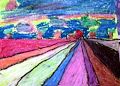 Well, Reid, I do not even know where to begin! This is by far your most impressive piece of work. I feel as if I’m back at the Keukenhof Gardens near Amsterdam that has rows upon rows of beautiful tulips in the spring. We’ll have to go there sometime so you can see the resemblance. Your painting makes me feel like it’s finally spring. Keep up the amazing work. I love you more than all the tulips in your painting.
