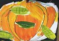 I love the bright orange pumpkin and green leaves!
