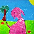 I love your pink dog! The color is so bright and beautiful. It gives me a feeling of a warm sunny day. Love, Mommy