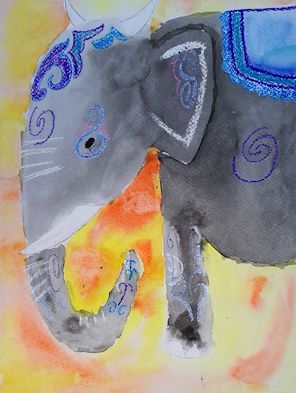 I love your choice of colors and patterns in this piece.