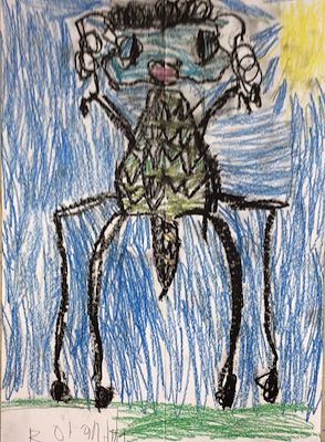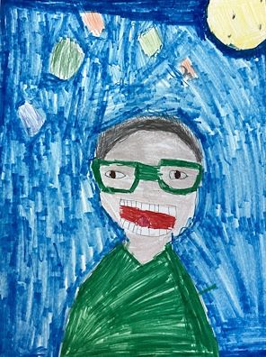This picture makes me feel very patriotic!! Love the way you drew the eagle really large (they are very big in real life) and superimposed it over the musical score for our National Anthem. You even got the Stars and Stripes in the picture. Really cool, Roland!! Keep up the great work! I'm proud of how much you're learning in your art class.