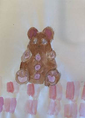 Cute little teddy bear! Love the colors-good job!