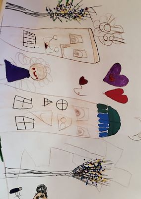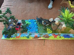 Very creative from stuff at home. Nice use of available pieces to make a clever 3d scene.
