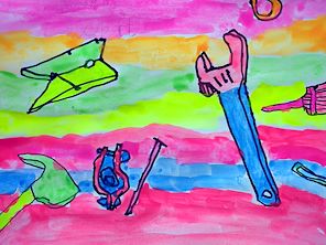 Awesome painting Everett! Love the colors and selection of tools. Papa would love using those awesome tools!