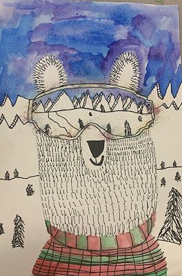 I love your polar bear's ski mask!!!! sooo cute! What a beautiful winter scene!