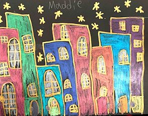 Maddie, Love this skyline picture you made. So colorful and detailed. My favorite part is the stars!! So beautiful. Love, Grandma