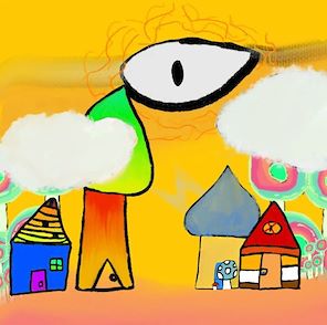 I am mesmerized by this piece - I love the colors and it feels like a dream sequence- giving Dali vibes with the eye in the sky!