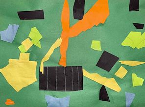 Hi Theo! I like your colorful picture! You cut many interesting shapes and I cannot wait to hear all about what your picture means! Keep up your great creativity!! Love, Grandma Xoxo