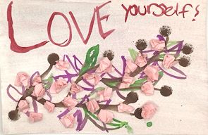 Wow that is striking! Love the colors and the line work and the pink flowers, nicely laid out on the branch and love the wording on the paper with the emphasis being on the LOVE. It has been awhile since we have seen your art work and this one is wonderful. I'd love to see the texture that makes it 3D...you just keep getting better!