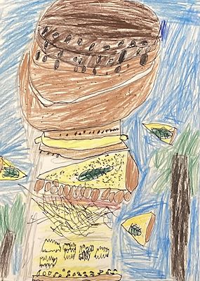 RT - I love this picture! The shapes and the colors and way you combined them are so pretty and creative. It reminds me of a beautiful stained glass window. Great work! Love, Mom
