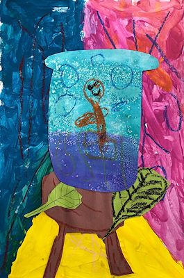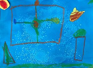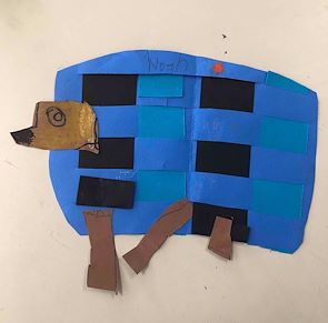 Brown dog in a Blue crate. I like this project very much Noah. Your artwork is becoming three dimensional and more realistic. Enjoy your creativity hour.