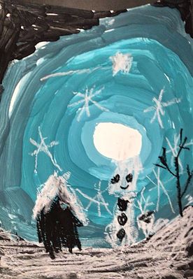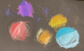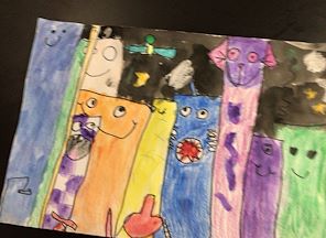 Now this picture is really great! Water, reflections and ripples are fun to study and imagine how to represent in a 2-D format. Bubbles and droplets are a good idea for a picture. Well done! It looks like you started with a dark gray or black paper. Did you have a colored backdrop or colored lights to see how the bubbles reflected things around them. We should try this idea next time you are with us. You might even see a reflection of yourself in one of the bubbles. PaPa & MiMi