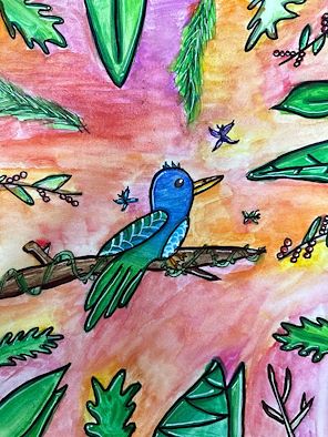 Wow! The colors of this drawing just jump off of the page at you. Really, really good Bree. I like the little vine on the tree running under the bird. Very good touch.