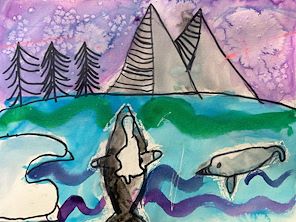 Wow Shay. I just love your art work. I can tell they are Arctic animals. Seal and whale swimming and your ice flow. Excellent job. Keep up the good work. ?Nana?