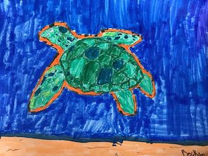 Great work on this turtle! It is nicely detailed, and it looks so happy swimming in the blue water!