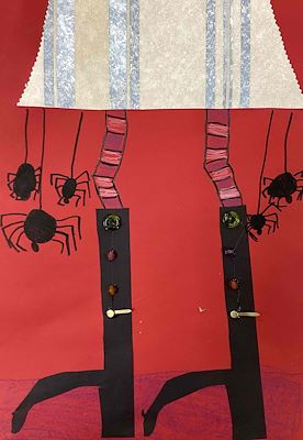 I can't believe the detail you put in your haunted house! I love the colors! The creepiness! the ghosts and bates and cemetery! Love you, Grandma