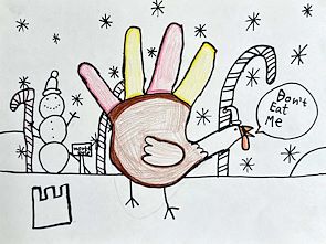 I love your “turkey” picture!! Especially with the snowman and candy canes in the background! Love Gram