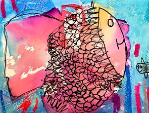 I really love your artwork Riley. It reminds me of when Pop and I took you fishing for your birthday, and then you painted a canvas. I love your art!
