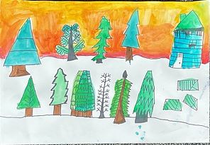 I love the variety of trees you drew! I love the blending in the sky. Good job Jimmy!