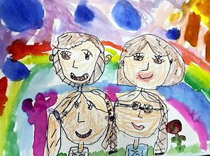 HARPER I ABSOLUTELY LOVE THIS! The details that you added are excellent! I can see your pigtails, your sister's glasses and braids, Mom's lipstick and Dad needing a shave! Great work!