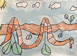 Love this, Avery! The snake looks like he’s having a little rest after a day of climbing and slithering!