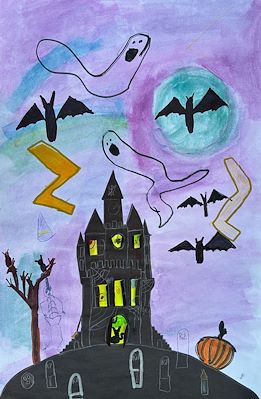 This house definitely looks ready for "Spooky Season." If the graveyard in the moonlight doesn't give you a chill - the ghosts, bats, and skeleton are sure to do the trick! I wonder if those owls are waiting for a witch to come out of the house and fly away on the broom that she left by the door. BOO - TIFUL WORK!!!