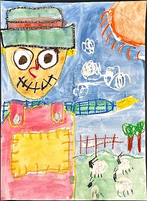 That is 1 happy scarecrow. He sure does love his job!