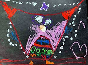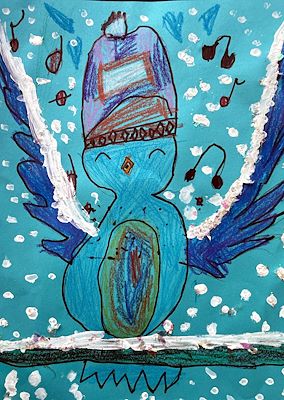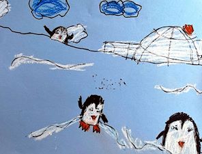 Penguins and an Igloo. Beautiful winter scenery. Good job Aubrey making a colorful winter wonderland. Your biggest fan. Love Nonna