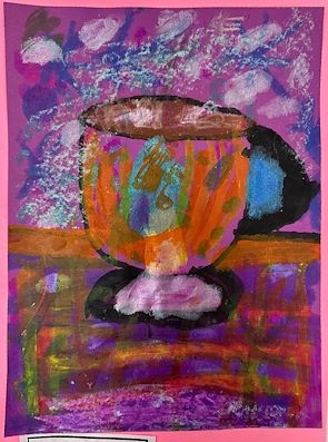 Hi Emma, what an adorable ghost! I think he is thinking of all the delicious treats wrapped up in colorful paper circling around his head. He probably can’t decide on which one he should eat first. Great job! Love Nonna