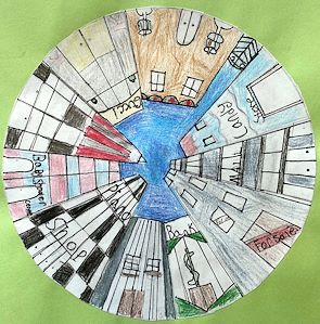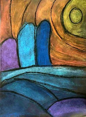 I love this piece of artwork. It says I’m surrounded or trapped by huge things and the piece is looking up to Heaven. Love- Mom