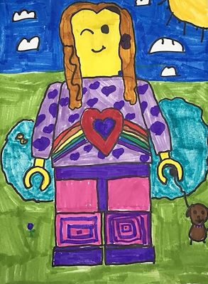 This picture is amazing Sterling!! I love all the colors and shapes that you incorporated. I'm also very impressed with how you added depth to your picture by placing the pond behind the lady! Love, Gma