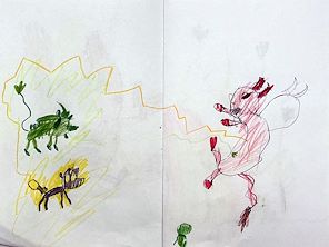 Great Job River! I love the movement in this picture. The colours all complement each other. I especially like the reaction of the green beast, I feel like I can hear his voice! Keep creating your art, at this rate you’ll have your work hanging in galleries around the globe!