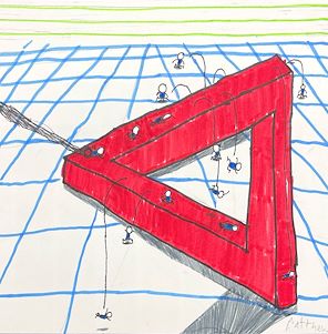 This is a very creative work. I like running my finger around one edge of the triangle and see how it changes. The figures using bungees are fun, too.