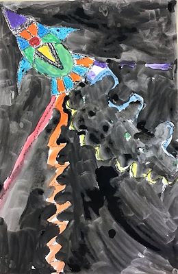 Great work of the colorful rocket and the dark background!