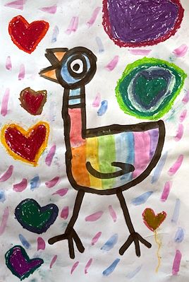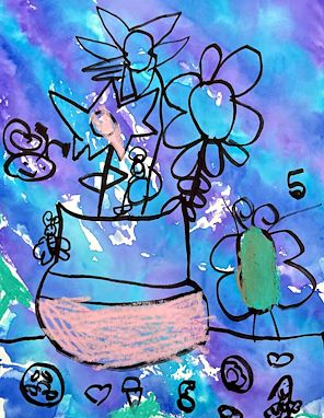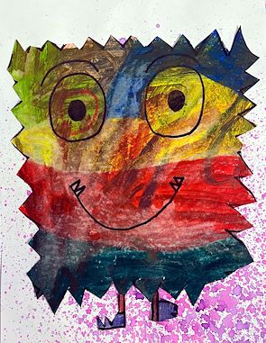 Daddy and I love your creature's big, bright eyes and huge smile with those corner chompers! Great job!
