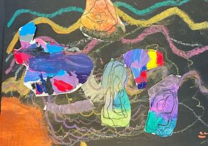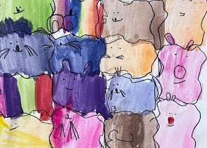 Colorful. I bet there is a meaning to it buddy. Good job. Mom loved it. Keep on drawing.