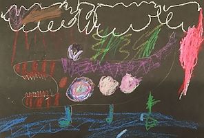 Wyatt, you drew a great alligator. I see the alligator is in the water and there are clouds in the sky. I hope you do not see a real alligator when you go to Florida. I love you!
