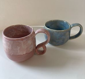 I'm so impressed with how these mugs turned out especially for being the 1st time using the wheel! The colors are gorgeous and I especailly love the handle on the pink one! Great job Reyna!!!